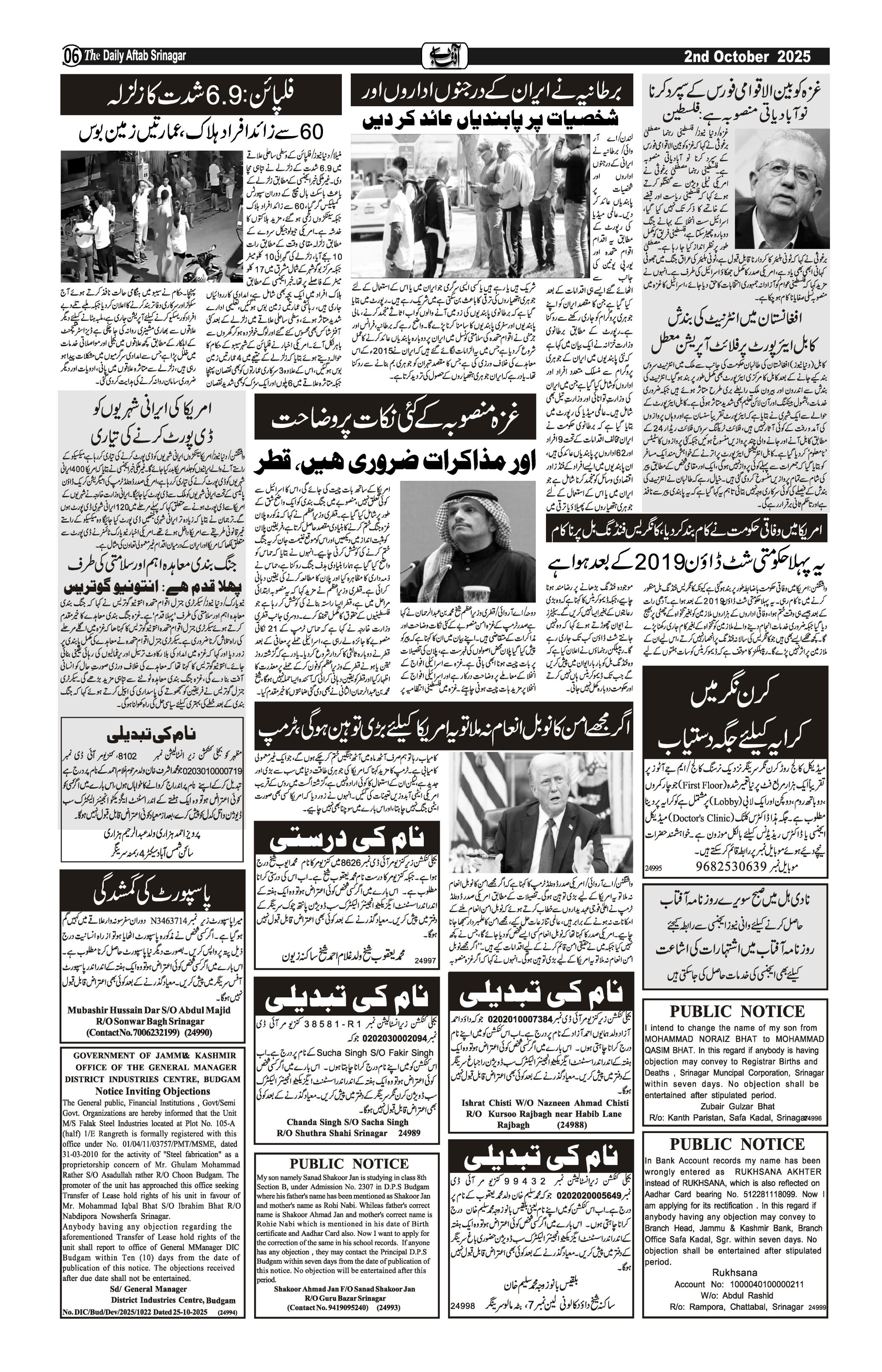 Daily Aftab 02 Oct 2025 Page: 6 October 02, 2025 << First << 6 >> Last >> Page 1Page 2Page 3Page 4Page 5Page 6Page 7Page 8Page 9Page 10Page 11Page 12 × Daily Aftab 02 Oct 2025 P1P2P3P4P5P6P7P8P9P10P11P12 << First << 6 >> Last >> P1P2P3P4P5P6P7P8P9P10P11P12