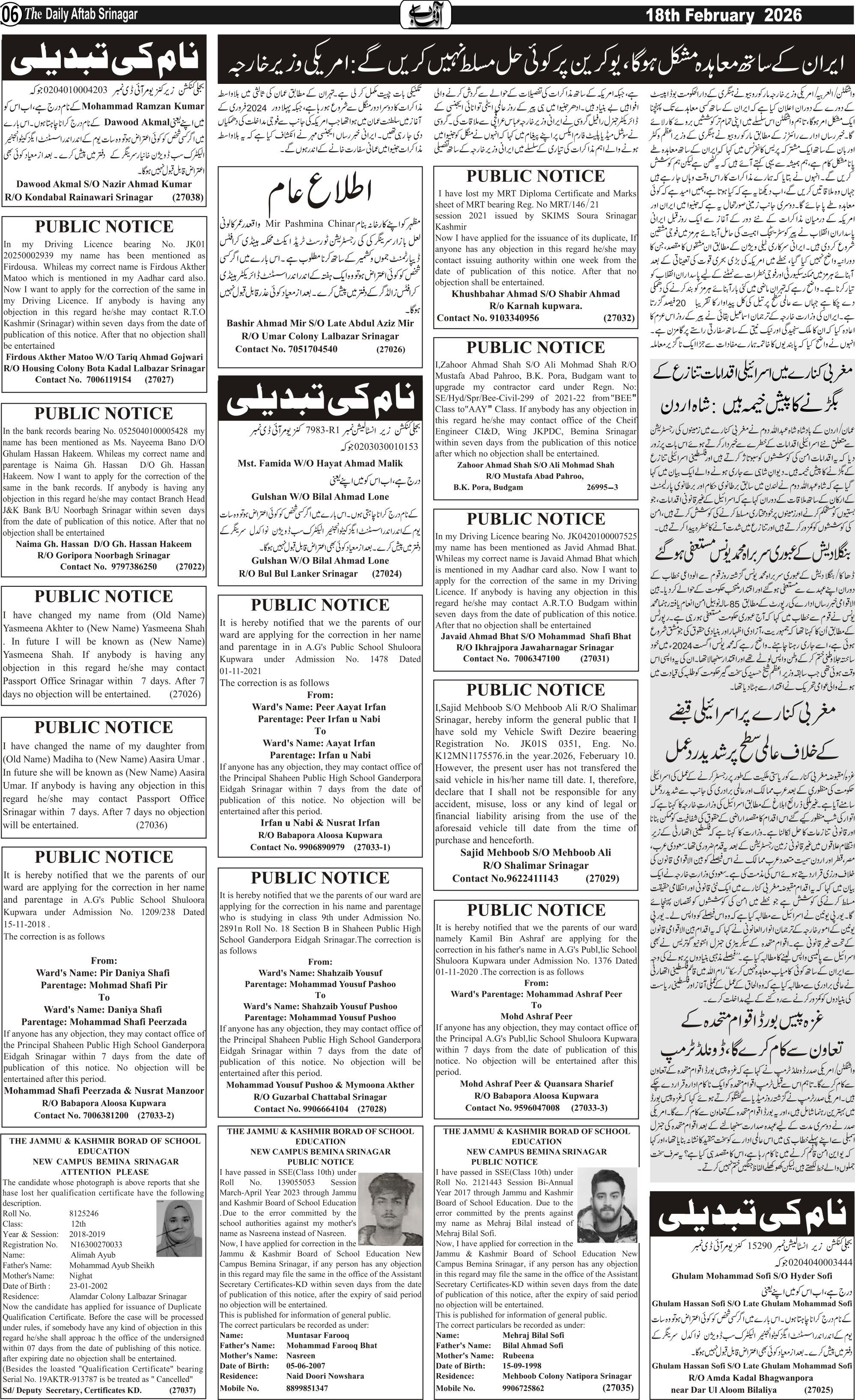 Daily Aftab 18 Feb 2026 Page: 6 February 18, 2026 << First << 6 >> Last >> Page 1Page 2Page 3Page 4Page 5Page 6Page 7Page 8Page 9Page 10Page 11Page 12 × Daily Aftab 18 Feb 2026 123456789101112 << First << 6 >> Last >> 123456789101112