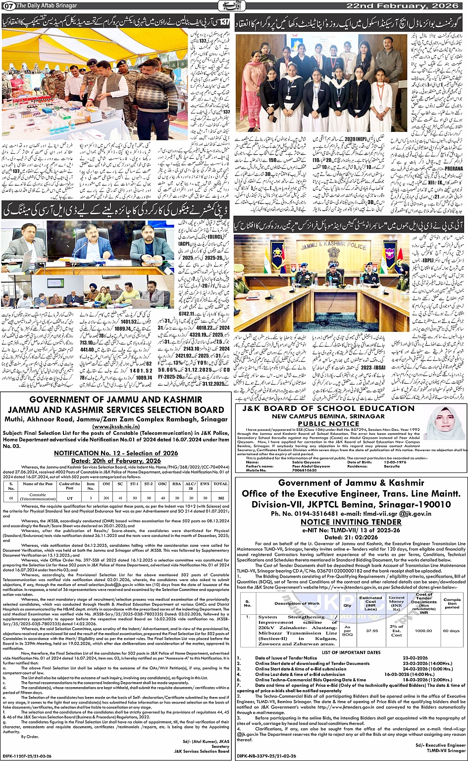 Daily Aftab 22 Feb 2026 Page: 7 February 22, 2026 << First << 7 >> Last >> Page 1Page 2Page 3Page 4Page 5Page 6Page 7Page 8Page 9Page 10Page 11Page 12 × Daily Aftab 22 Feb 2026 123456789101112 << First << 7 >> Last >> 123456789101112
