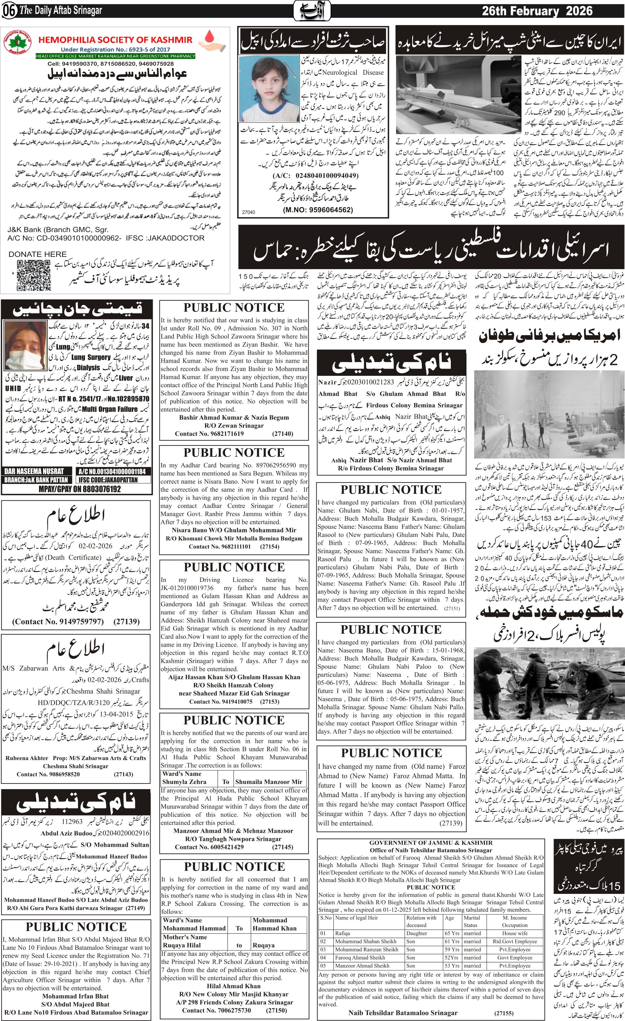 Daily Aftab 26 Feb 2026 Page: 6 February 26, 2026 << First << 6 >> Last >> Page 1Page 2Page 3Page 4Page 5Page 6Page 7Page 8Page 9Page 10Page 11Page 12 × Daily Aftab 26 Feb 2026 123456789101112 << First << 6 >> Last >> 123456789101112