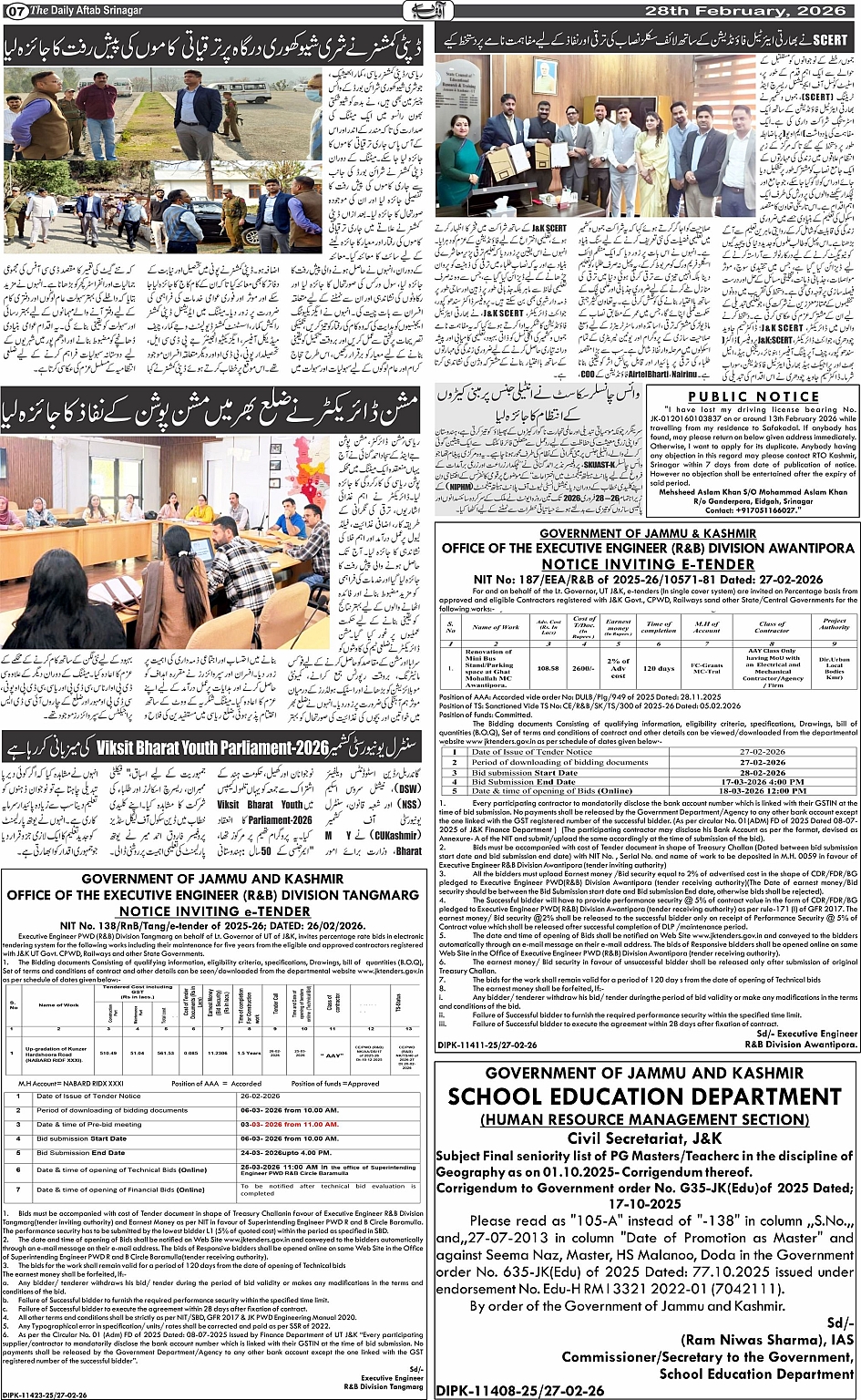 Daily Aftab 28 Feb 2026 Page: 7 February 28, 2026 << First << 7 >> Last >> Page 1Page 2Page 3Page 4Page 5Page 6Page 7Page 8Page 9Page 10Page 11Page 12 × Daily Aftab 28 Feb 2026 123456789101112 << First << 7 >> Last >> 123456789101112