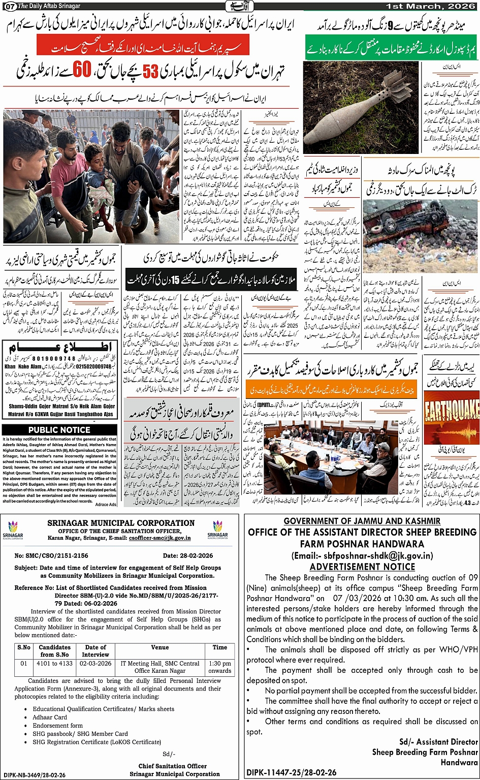 Daily Aftab 01 Mar 2026 Page: 7 March 01, 2026 << First << 7 >> Last >> Page 1Page 2Page 3Page 4Page 5Page 6Page 7Page 8Page 9Page 10Page 11Page 12 × Daily Aftab 01 Mar 2026 123456789101112 << First << 7 >> Last >> 123456789101112