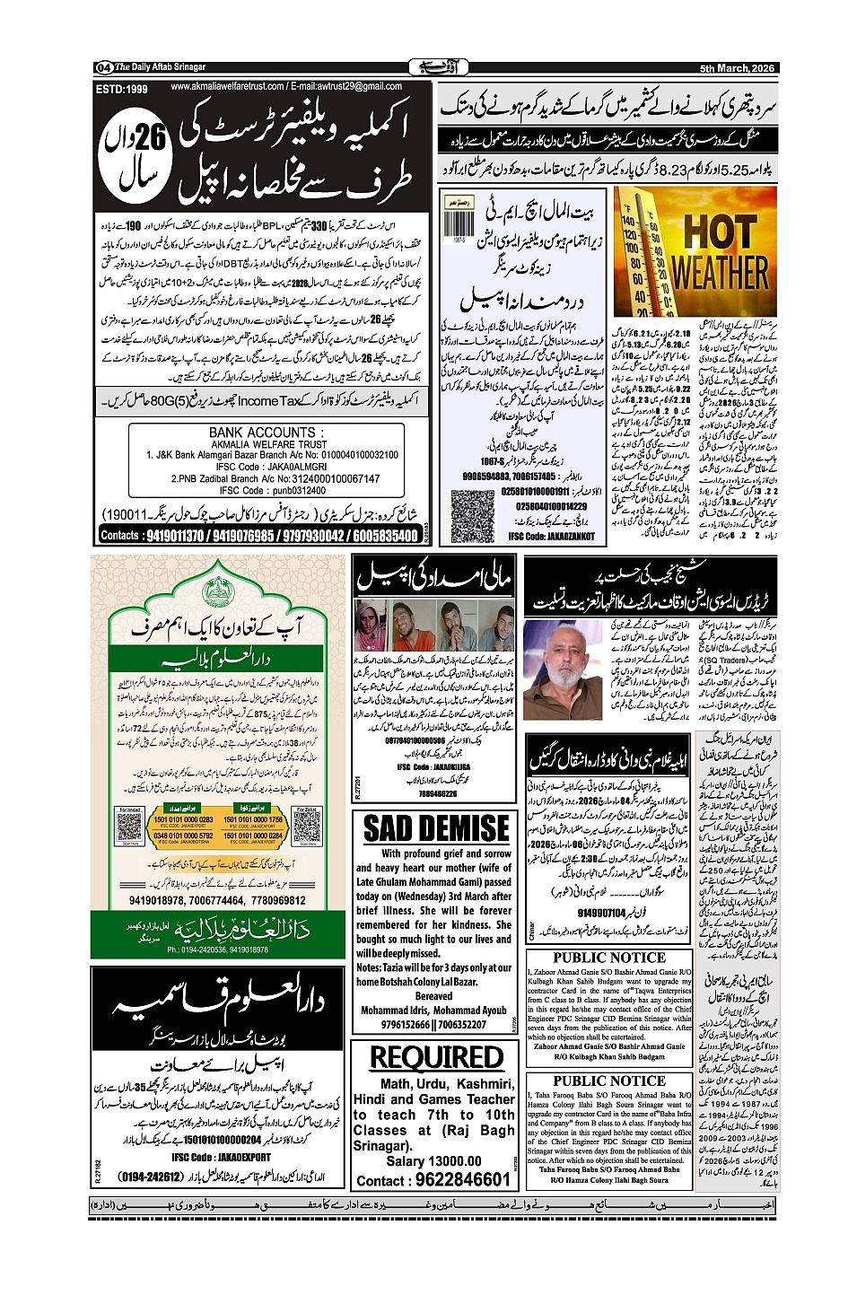 Daily Aftab 05 Mar 2026 Page: 4 March 05, 2026 << First << 4 >> Last >> Page 1Page 2Page 3Page 4Page 5Page 6Page 7Page 8 × Daily Aftab 05 Mar 2026 12345678 << First << 4 >> Last >> 12345678