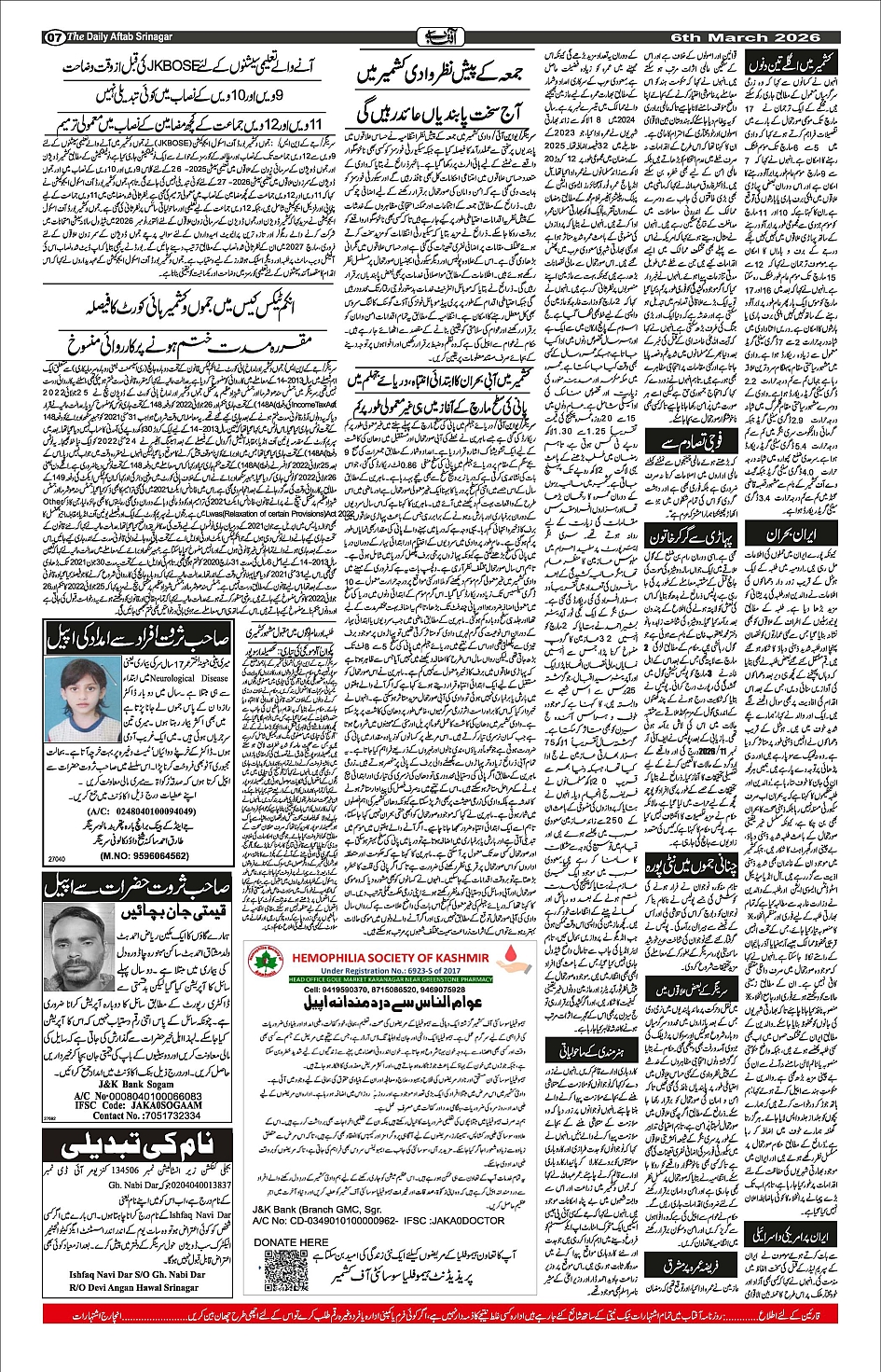 Daily Aftab 06 Mar 2026 Page: 7 March 06, 2026 << First << 7 >> Last >> Page 1Page 2Page 3Page 4Page 5Page 6Page 7Page 8 × Daily Aftab 06 Mar 2026 12345678 << First << 7 >> Last >> 12345678