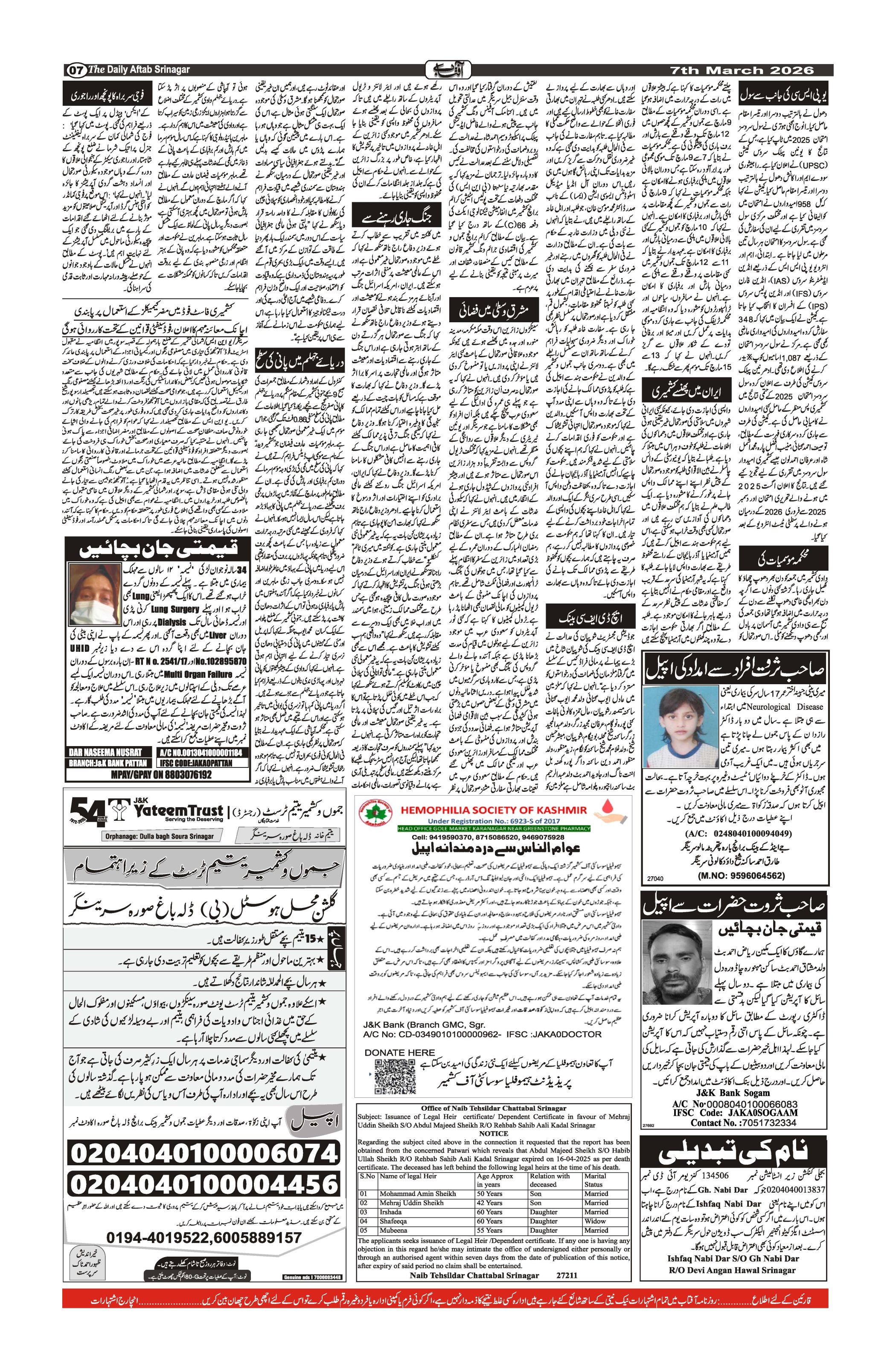 Daily Aftab 07 Mar 2026 Page: 7 March 07, 2026 << First << 7 >> Last >> Page 1Page 2Page 3Page 4Page 5Page 6Page 7Page 8 × Daily Aftab 07 Mar 2026 12345678 << First << 7 >> Last >> 12345678