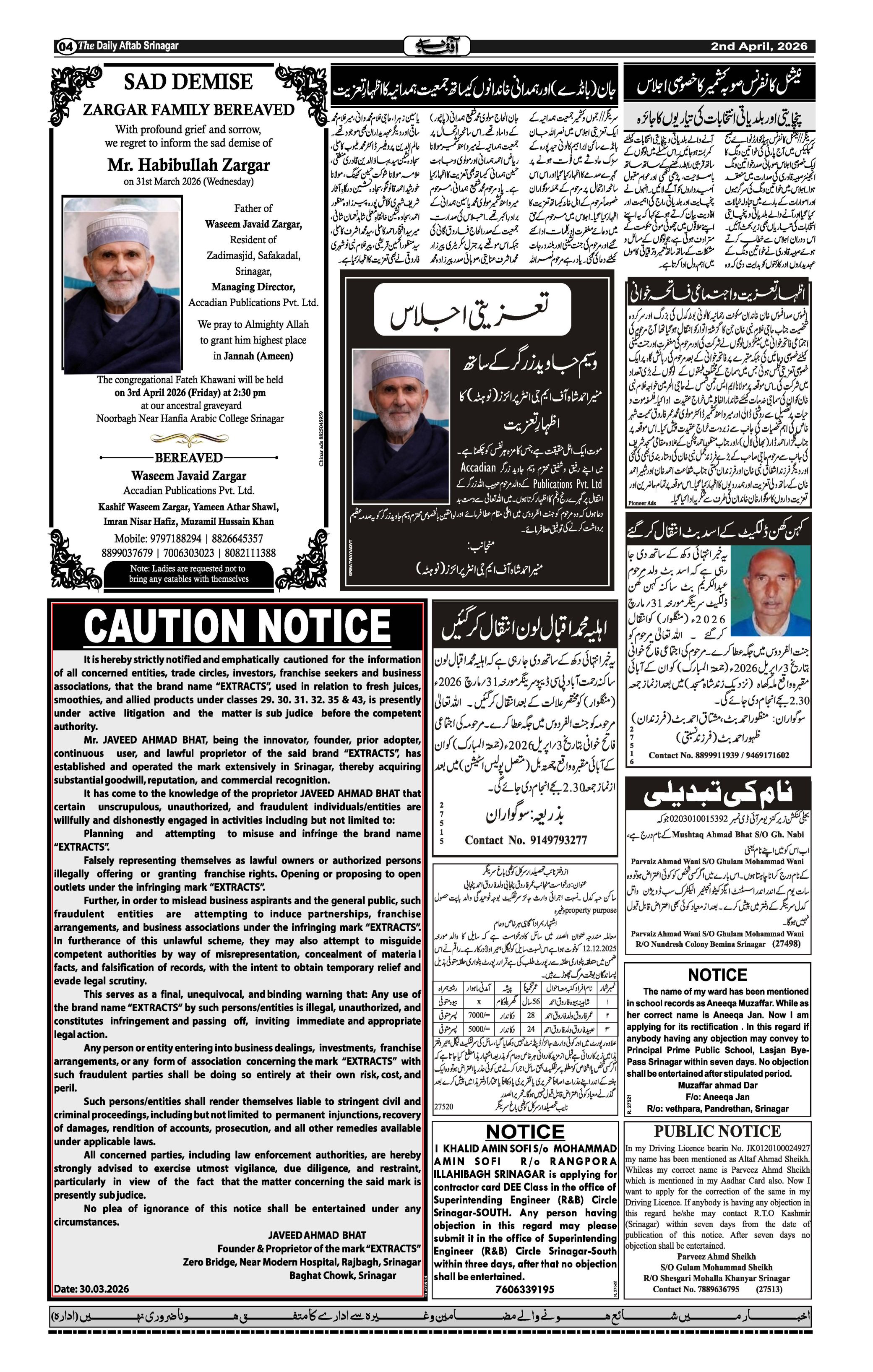 Daily Aftab 02 April 2026 Page: 4 April 02, 2026 << First << 4 >> Last >> Page 1Page 2Page 3Page 4Page 5Page 6Page 7Page 8Page 9Page 10Page 11Page 12 × Daily Aftab 02 April 2026 123456789101112 << First << 4 >> Last >> 123456789101112