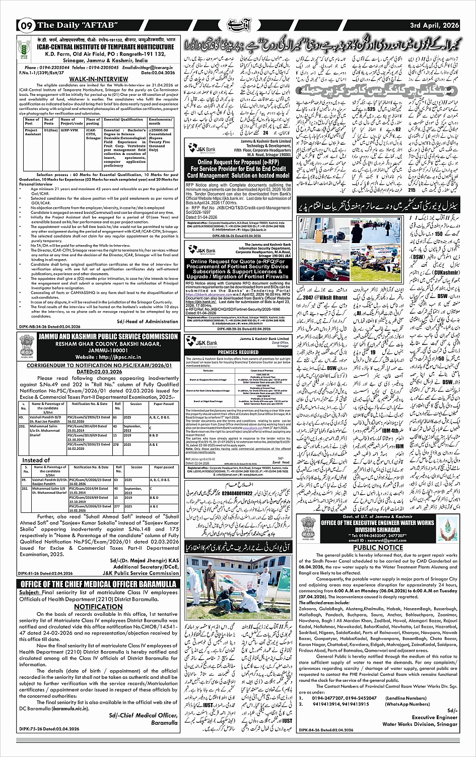Daily Aftab 03 April 2026 Page: 9 April 03, 2026 << First << 9 >> Last >> Page 1Page 2Page 3Page 4Page 5Page 6Page 7Page 8Page 9Page 10Page 11Page 12 × Daily Aftab 03 April 2026 123456789101112 << First << 9 >> Last >> 123456789101112