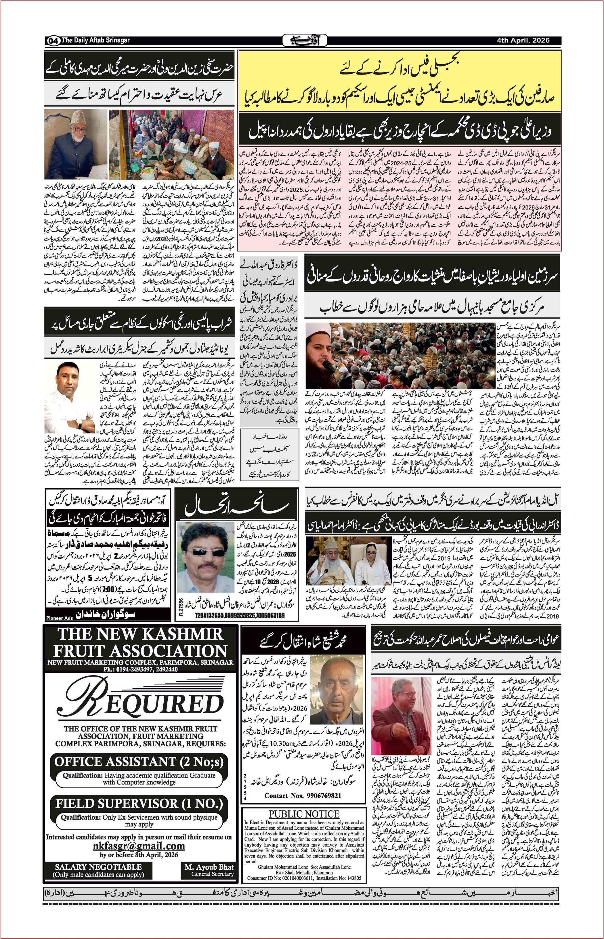 Daily Aftab 04 April 2026 Page: 4 April 04, 2026 << First << 4 >> Last >> Page 1Page 2Page 3Page 4Page 5Page 6Page 7Page 8Page 9Page 10Page 11Page 12 × Daily Aftab 04 April 2026 123456789101112 << First << 4 >> Last >> 123456789101112