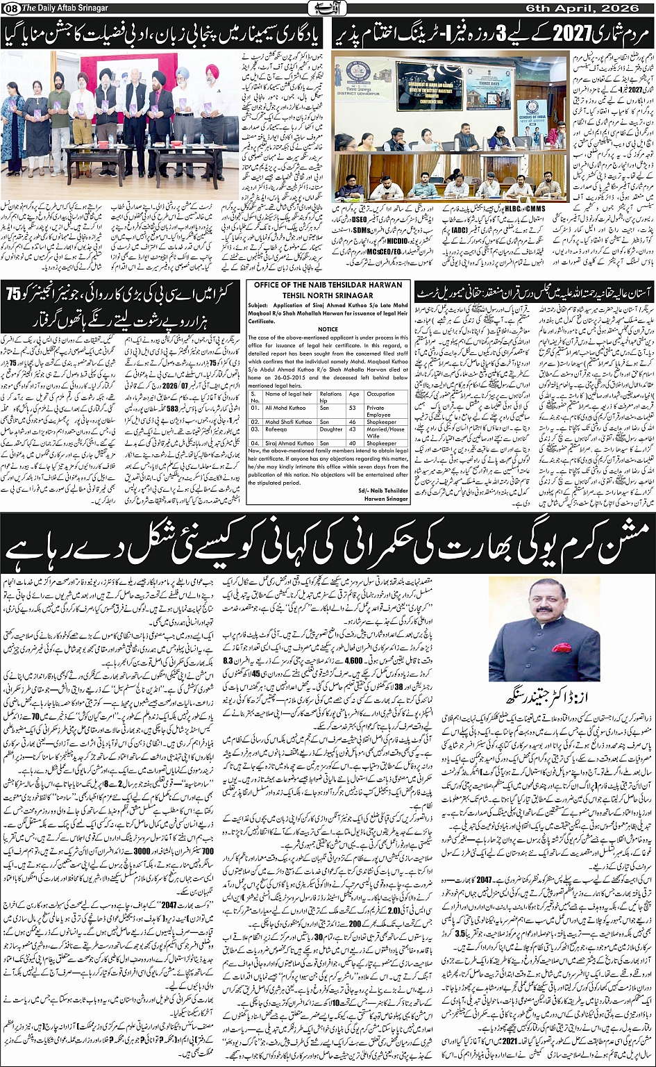 Daily Aftab 06 April 2026 Page: 8 April 06, 2026 << First << 8 >> Last >> Page 1Page 2Page 3Page 4Page 5Page 6Page 7Page 8Page 9Page 10Page 11Page 12 × Daily Aftab 06 April 2026 123456789101112 << First << 8 >> Last >> 123456789101112