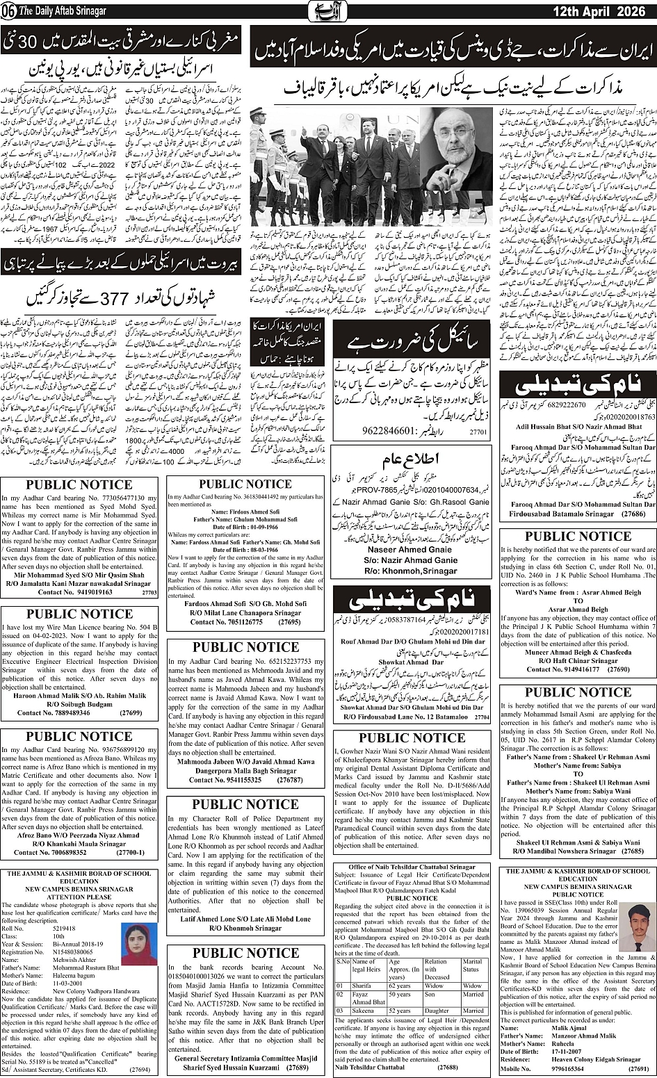 Daily Aftab 12 April 2026 Page: 6 April 12, 2026 << First << 6 >> Last >> Page 1Page 2Page 3Page 4Page 5Page 6Page 7Page 8Page 9Page 10Page 11Page 12 × Daily Aftab 12 April 2026 123456789101112 << First << 6 >> Last >> 123456789101112
