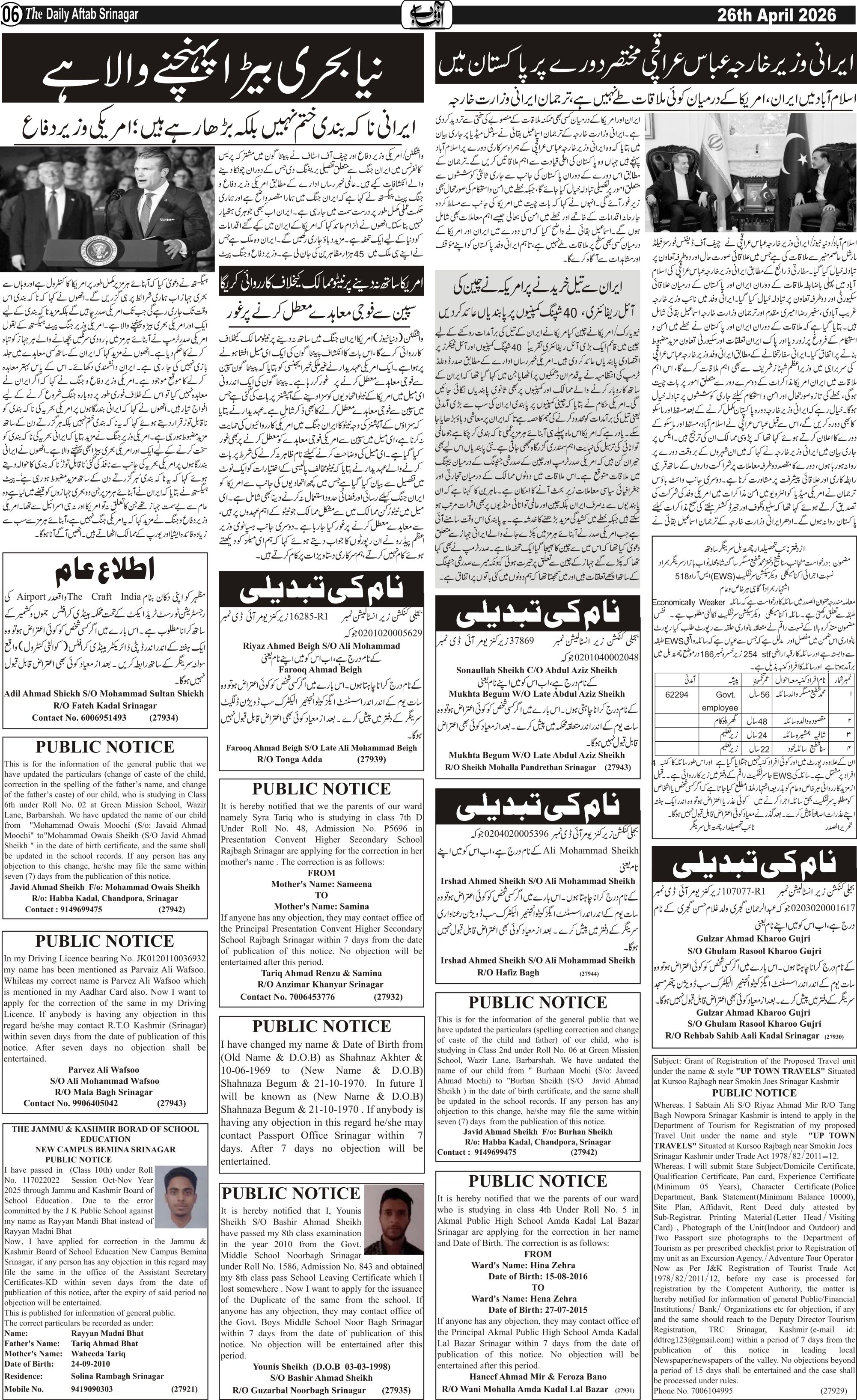 Daily Aftab 26 April 2026 Page: 6 April 26, 2026 << First << 6 >> Last >> Page 1Page 2Page 3Page 4Page 5Page 6Page 7Page 8Page 9Page 10Page 11Page 12 × Daily Aftab 26 April 2026 123456789101112 << First << 6 >> Last >> 123456789101112